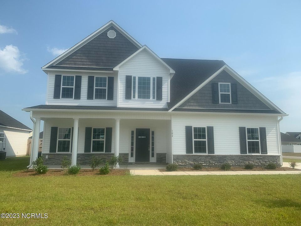 Welcome to the highly desired & popular community of Onslow Bay. Brand new construction built by Onslow County's most trusted & preferred builder, featured in Builder 100/ Top 200 Builders in the country. Onslow Bay is a hot spot, 3 miles to MCB Camp Lejeune's Piney Green gate, 14 miles to New River Air Station & minutes to area schools, shopping & dining. This beautiful neighborhood is sure to impress, complete with a clubhouse area & community pool. Welcome to the Catalina floor plan: 4 bedrooms, 2.5 baths, and approximately 2278 heated square feet. The exterior of this home boasts great curb appeal with an awesome covered front porch, modest landscape, and sodded front lawn. The front porch leads into an impressive 2-story foyer. The formal dining room is approximately 14x12; a great space to entertain on special occasions. The kitchen is perfect with beautiful, staggered flat-panel cabinets, stainless steel appliances, and an island for extra seating. The kitchen is also open to a breakfast nook and the living room. The living room features a ceiling fan and a cozy fireplace. Main level laundry room. All bedrooms are on the second floor. The master suite is approximately 17x16 and boasts a spotless master bath with a separate tub and shower, oversized bathtub and a true walk-in closet. This charming floorplan is also complete with a 2-car garage. Call today to view! NOTE: Floor plan renderings are similar and solely representational. Measurements, elevations, and specs may vary in final construction. Limited selections for buyer to choose. Call L/A to verify.