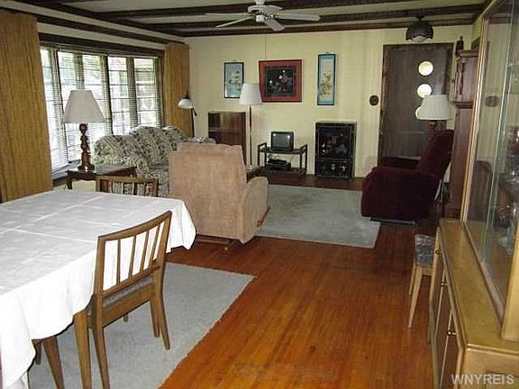 One owner, 3 bedroom, 1.5 bath ranch home! Generous size living room/dining room combo with wood burning fireplace & hardwood floors. Fully equipped kitchen with separate eating area. Spacious master bedroom & 2 others all with hardwood floors. Enclosed bright front porch with electric heat plus 2 basement rec rooms with electric heat & 1/2 bath. Central Air! Large breezeway porch opens to rear yard patio area with built in barbecue grill & fully fenced private yard with great outbuilding for workshop with electric.