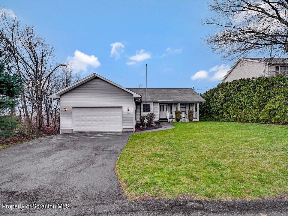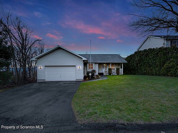 One level living in a quiet Dunmore neighborhood. This home is currently set up with 2 bedrooms and 2.5 bathrooms but can be set up as a 3 bed. On the main living floor the kitchen, dining and living room are open concept with high vaulted ceilings, a fireplace and skylights. Outside enjoy a covered deck with a fenced yard. The garage is oversized, having room for two vehicles plus storage. The lower level of this home is daylighted and has a large family room, bar, half bath and more storage space. Schedule a showing today!