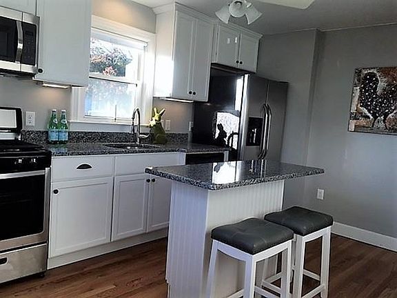 WELCOME HOME! Picture yourself as the new owner of this inviting home! Captivating 3-bedroom Cape-Cod style home on a very charming street in the north-end of New Bedford, surrounded by other properties that boast ownership pride! Imagine preparing meals in this beautiful kitchen with new stainless steel appliances, upgraded cabinets, granite countertop, newly installed hardwood floor & an island with room for 4! Newly remodeled bathroom with granite top vanity and porcelain tile floor! Original hardwood floors have just been refinished...simply gleaming! The entire 2nd floor is a bedroom/playroom combination...or can be turned into a spacious master bedroom or whatever your heart desires! Exterior is maintenance-free vinyl siding, replacement windows, brand new architectural shingled roof 2016, spacious yard with newly painted storage shed! Alarm system. This turn-key home is waiting for you to move right in!
