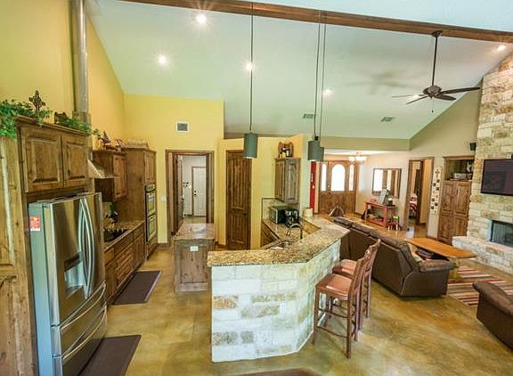 LOOKING FOR A CUSTOM HOME WITH PRIVACY TUCKED AWAY AMOUNG MATURE OAKS ON ALMOST AN ACRE WITH NO HOA AND A DETACHED WORKSHOP? This Hill Country Style home with both privacy fencing and cross fencing. Beautifully stained concrete floors throughout this uniquely split floor plan. Many features include 720 sq. ft shop with water, custom Knotty Alder wood cabintry, granite, upgraded appliances, 4 bedrooms, 3.5 baths, expansive ceilings, large rooms, walk-in closets & much more. Priced below recent appraisal.