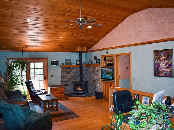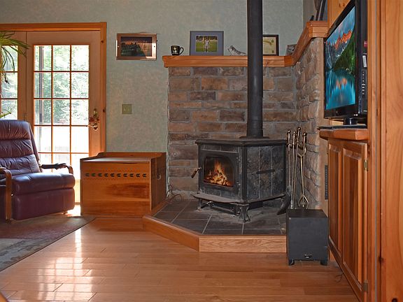 Private, custom, Adirondack home with 4br/2.5ba on 5 acres. Wooded setting, with no neighbors in sight. Handmade cherry cabinetry, oak floors, knotty pine T&G ceiling, full finished basement with custom bar, attached workshop/2 car garage & carport. Very well insulated, efficient, low maintenance home. Large back deck, lots of wildlife & trails through property. Close to lakes, hiking and all that the beautiful Adirondacks have to offer!