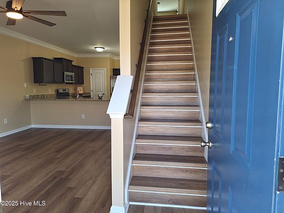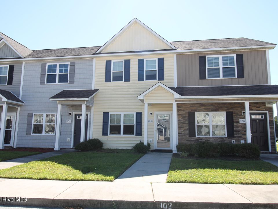 Charming southern beach town, with a short drive to the beaches, shopping and marinas. This home offers two bedrooms each with a private full bath, and powder room on the first floor and laundry on the second floor. Easy to care for LVP flooring on both levels of the home. The kitchen features granite countertops, newer stainless steel appliances, the dishwasher has a third rack and the refrigerator is included. Do you have a Fur Baby? The back yard is fenced-in and has easy to clean astroturf. There is also a Bark Park just down Justice Farm Drive for your convenience. The HVAC was replaced in Fall 2024. Close to Camp LeJeune and Stone Bay bases, easy access to Jacksonville and Wilmington!