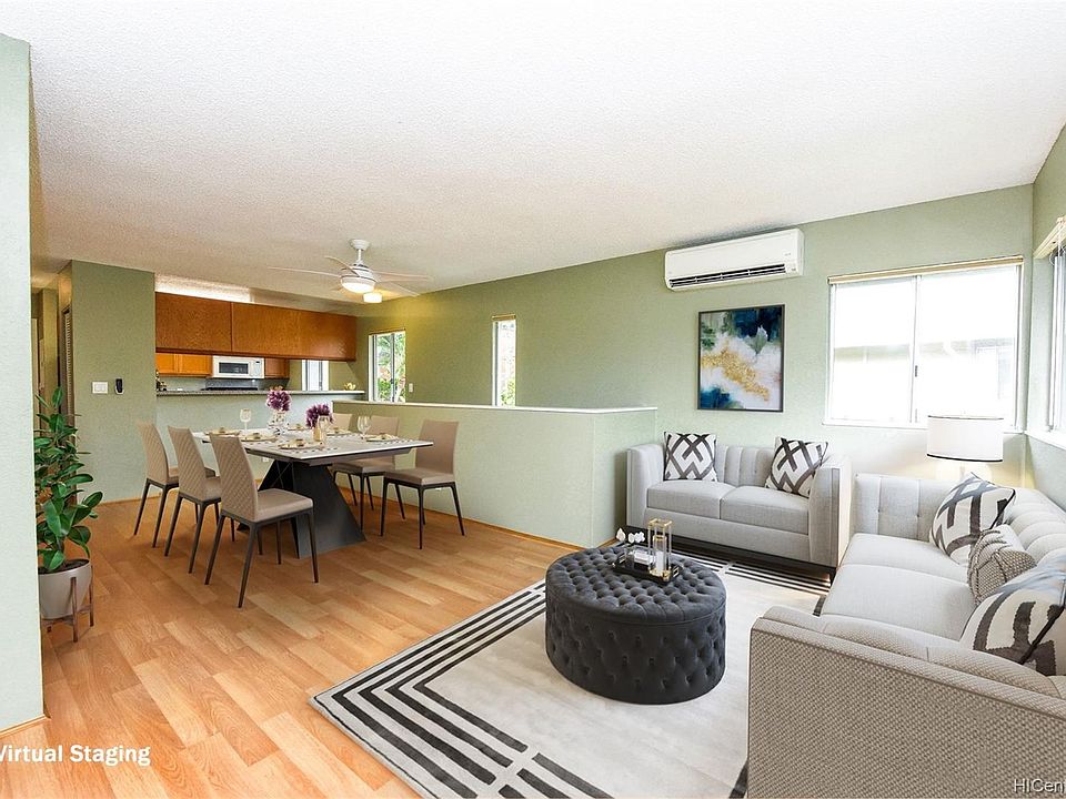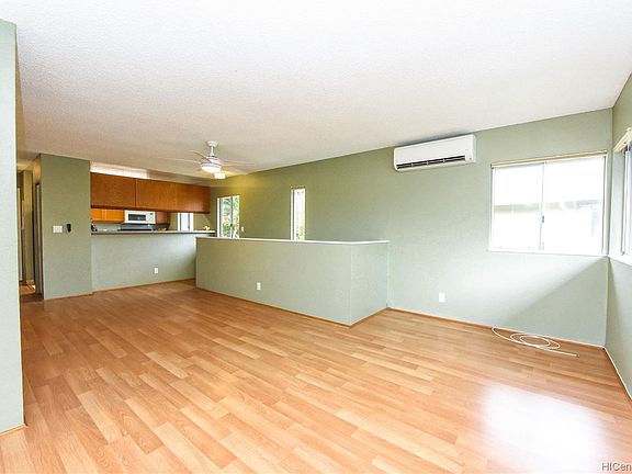 Rarely available, this charming 3 bedroom 2 bath perimeter unit in Kaopa Park Place is nestled in the Kailua Bluffs. Enjoy lush greenery all around this serene end unit with fully fenced yard in a most desirable cul-de-sac location. This well maintained home has laminate flooring throughout, 3 split AC systems, ceiling fans in every room and a large spacious garage. Low monthly maintenace fees that cover exterior upkeep and insurance for common areas.