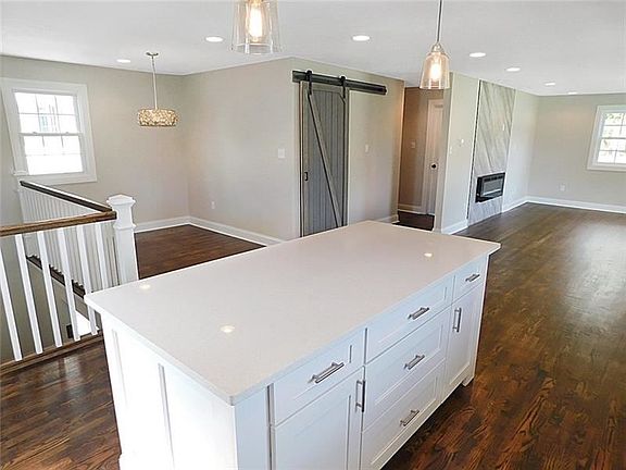 Upscale design choices, character and style encompass this 3 bedroom, 3 bath renovation. A gourmet kitchen with center island incorporates crisp white cabinetry, quartz countertops and stainless appliances. The open floorplan brings people together from the kitchen and dining areas to the beautifully designed living room featuring a mounted fireplace against a ceramic tile wall feature. The master suite incorporates a master bath hosting a ceramic tile walk in shower and double vanity. The finished walk out lower level is comprised of a guest bedroom suite with full bath, family room, laundry room and mechanical room. Other upgrades include: open staircase to lower level, all new wiring, modern lighting, hardwood flooring, new vinyl siding, newer furnace, new hot water tank, new well, public sewer back patio and side deck. 2 car garage.