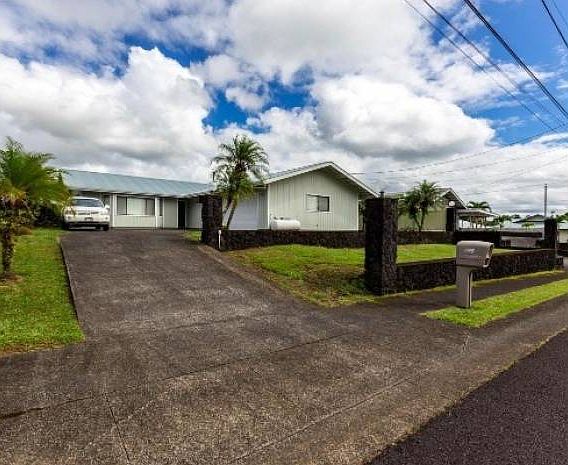 Spacious custom home in desirable Waiakea Heights. Large living room with dining area and huge windows to let in the breeze and natural light. Slider off the living room leads to the rear lanai overlooking the lush lawn, perfect for outdoor gatherings. Kitchen has stainless appliances, single surface countertops, a breakfast bar, and a ton of cabinet and counter space. All three bedrooms are big and comfy while the master has an attached bathroom with dual sinks and custom tile finishes. There's a walk-in storage closet in the hall, an interior laundry room, and an oversized garage big enough for two cars and storage for your toys and tools. Take advantage of this opportunity to own property in Waiakea Heights- where homes are always in demand, but rarely available.