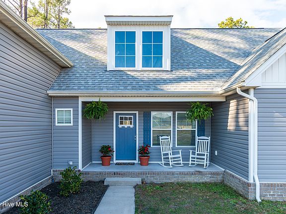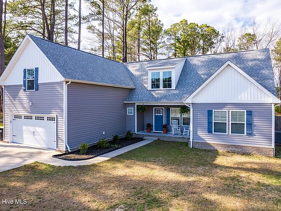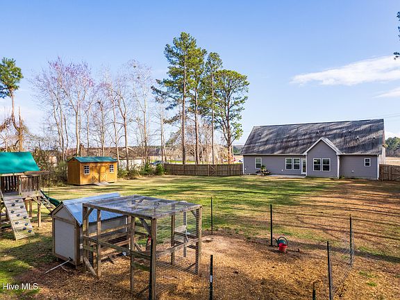 Come see this beautiful home! It's only four years old, move in ready, and fresh paint through out! Its a short drive to the VA/NC line. Sits on over 1 acre with trees on the property line for more privacy and no HOA. The main living space including the kitchen, dining and living room is open concept. The ceilings in the living room are over 13 ft tall. The main floor provides 3 large bedrooms with walk in closets along with 2 full baths. Primary bedroom has his and her closets. 4th bedroom is the FROG which includes its own separate full bathroom. A gas fireplace in the living room that has not yet been used. The home has a full house reverse osmosis water filtration system, a 2 car garage and small shed out back. Owners are happy to leave their chicken set up if desired. Not in a flood zone.