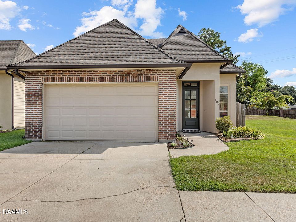 Location! Location! Location! This jewel is located behind Adrien's Supermarket, which means that it is only seconds away from hospitals, the new Lafayette High School, restaurants, shopping, and all that Lafayette has to offer. The sizeable living room boasts a gas fireplace that has never been used, built-in shelving and cabinets, and large windows that allow lots of natural light into this beauty. The kitchen vaunts ample beautiful cabinetry, an island, a pantry, slab granite countertops, and stainless steel appliances. Right off the kitchen is a nice computer nook with a desk, drawers, and cabinetry. The primary bedroom has a tray ceiling and an en suite. The ensuite offers dual vanities, separate shower, jetted tub, and a walk-in closet that conveniently leads into the utility room. The guest bedrooms are a great size, and the guest bathroom does have a water closet with a toilet and shower/tub combo. The covered back patio is a great place to relax or to entertain. No carpet! Beautiful crown molding and millwork! Welcome home!