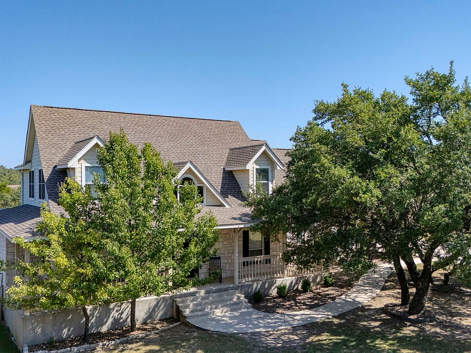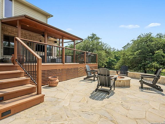 Welcome to your TWO ACRE Hill Country retreat in the highly sought-after Kendall Woods Estates! This traditional two-story, 3575 sqft, 4 Bed, 3.5 Bath home is nestled on 2 serene acres, surrounded by mature trees and natural beauty. The inviting front porch greets you with captivating charm. Step inside to the cozy foyer and take in the beautiful rounded archways of the home's architecture. The open living room with soaring ceilings and a warm fireplace is perfect for relaxing evenings. The kitchen offers an abundance of storage with an island and an eat-in dining area. The primary bedroom is conveniently located on the main level and features exterior access to the HUGE new back deck, a walk-in closet, and a spa-like bath featuring a garden tub, separate shower, and dual vanities. Upstairs, in addition to the secondary bedrooms, you'll find a designated office and a spacious flex space with a full bath - the potentials are endless with this layout! Unwind on the expansive deck with covered outdoor living space while taking in the peaceful Hill Country views, relax around the cozy firepit, send the kids to romp in the play areas, or simply stroll through the spacious backyard and explore. Convenient location with easy access to Boerne, Bulverde, and San Antonio. Boerne ISD. Welcome Home!