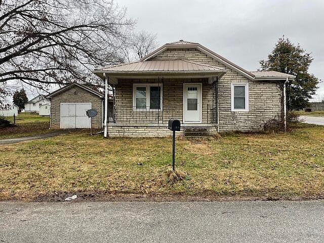 Charming and rare find, this stone home offers so much to the new owners. Situated on a double corner lot with a beautiful covered front porch and spacious patio area outback. This property features a 2 bedroom 1 bath home with a detached garage. Inside you will find a great size natural gas fireplace for those wintery nights. The oversized laundry room offers the ability to create an additional room of choice. Priced to sell, this wont last long. Home is sold as is where is.