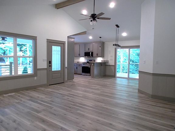 NEW 3/2 Custom Craftsman Style. Many special features including cathedral ceilings in the main living area, kitchen, and large master bedroom all accented with beams, granite countertops, under counter lighting, stainless appliances, pantry, nice size laundry room, vented wood burning fireplace or install gas logs if that's your preference, wainscotting, double sink vanities in both bathrooms, fan/heat/light fixture in the bathrooms, custom trim, efficient dual fuel heat hvac, Hardi board and batten siding, covered front deck wraps around to covered side deck, private end of the road location with a gentle laying yard. Fiber Optics available. Community boat launching ramp within this quiet neighborhood.
