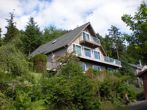 This home is a three story chalet style. The first floor has a garage with a one bedroom apartment. The second floor has one full bathroom, laundry room, bedroom, kitchen, dining and living areas with a 180 degree ocean and islands view. This level has a 504 sq ft solid deck that has an 8'x13' climate controlled greenhouse. Under this deck is a storage area which has been closed in. This could be a crafts room or paint room if insulated and heated with a few more changes.