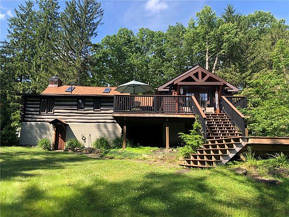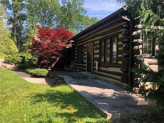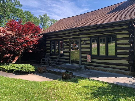 Absolutely Stunning Full Log Cabin in Deer Lake, one of the community's original log homes in exceptional condition, with beautiful addition on a woodsy 2.44-acre setting, so close to the 77 acre Lake! You'll love the living room, its size and warmth, Chestnut walls/beams, vaulted ceiling, large stone propane fireplace! Open to the Kitchen with appliances, dining bar. Hardwood in most of the home. Unique details throughout! 2nd bedroom is big enough for two double beds, and the Huge Master bedroom has French doors to the back deck for lovely woodsy views and relaxing privacy, both feature vaulted ceilings as well! 3rd bd is great office space! BONUS! Sleeping/Crafting Cottage on property w/patio and pond. The Lake area offers boating, swimming, trails, playground, pickleball/tennis, basketball, volleyball courts picnic pavilions, beach and diving/swimming buoyed area, community events. 2 mi to Ohiopyle State Park, near game lands, dining/shopping/historical sites/hiking. Sold Turnkey!