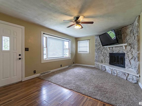 BRICK BEAUTY! This 3-4 bedroom, 2 bathroom brick ranch sits on a double lot with a 3 stall garage. Over a half acre lot with fenced yard, mature trees and patio. Cozy living room with bay window and corner fireplace. Dining area has sliding barn doors to the living room. Fully applianced kitchen includes a double pantry and painted cabinetry with newer hardware. Large main floor family room could also be utilized as a formal dining room. Beautiful hardwood floors in the 3 main floor bedrooms. Smallest bedroom could be converted into a main floor laundry room. Large lower level rec room and 4th bedroom. Fully applianced including washer and dryer. Numerous updates include furnace, central air and shingles. Room alongside the 36’x30’ garage for RV or boat. Available for immediate possession!