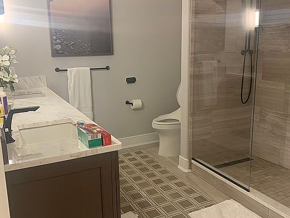- Floors: Wall to wall Carpet, Ceramic, Tile