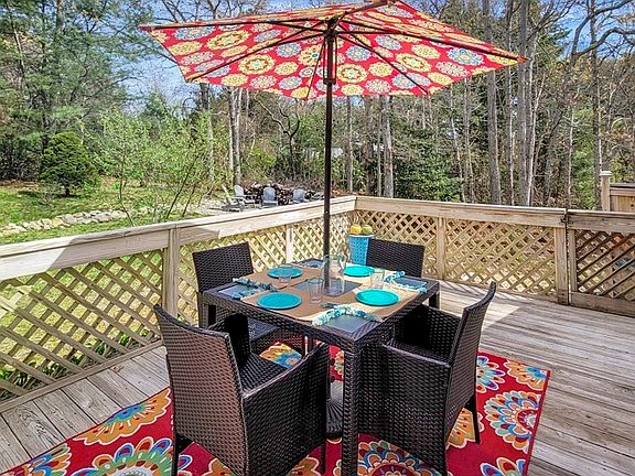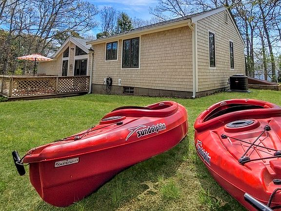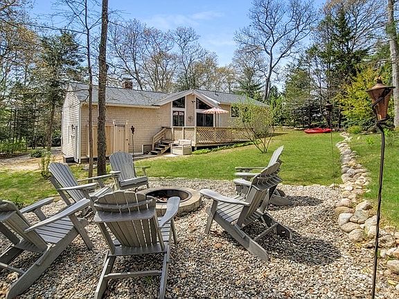 Escape to the perfect lakeside retreat with this charming 3-bedroom home in Holly Point on Lake Wequaquet. The exposed beams and high ceiling create a warm and welcoming atmosphere. The ceiling-high windows fill the house with natural light, creating a spacious and bright feel. The unfinished basement provides endless possibilities for usage, while the high-ceiling garage offers ample storage space. The open-concept living and dining area seamlessly flows into the fully renovated kitchen, featuring updated appliances, granite countertops, and an elegant tile backsplash. Enjoy the convenience and comfort of one-floor living at its finest.After a day of waterside activities on the association beach, just 0.3 miles away, rinse off in the outdoor shower before relaxing with friends around the outdoor fire pit or playing a match on the association tennis court. This home is conveniently situated just 2 miles from the Cape Cod Mall, with its numerous dining and entertainment options.