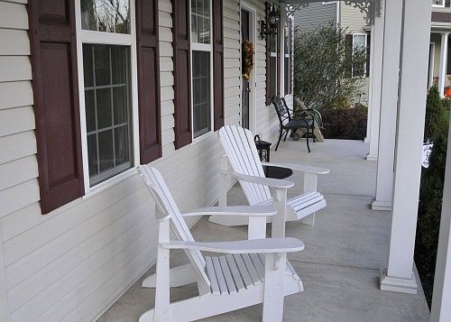 In a small community of beautiful homes, on a cul de sac street backed by woods, is an elegant Colonial style home with beautiful Victorian inspired finishes. As warm and inviting as a Thomas Kincaid painting, this home has been expertly constructed, stylishly decorated and immaculately maintained. The exterior of the home is extremely low maintenance. Featuring fish scale siding and spider web trim on the gable and matching spider web trim on the wide open rocking chair porch, this home begs you to come in and relax. In the rear of the home there is beautiful EP Henry paver walkway to the large Trex deck with vinyl railing overlooking the woods beyond. Imagine enjoying hot chocolate or a glass of wine in the cooler evenings wrapped in the glow of the setting sun. Inside the charming center hall is flanked by the living room and the dining room and leads to the marvelous kitchen and the cheerful breakfast room. Features include: Center island with dining extension, granite countertops and backsplash, 42" frameless cabinetry, double wide pantry and extensive storage. The laundry room is close at hand behind a pocket door and the first floor powder room is just beyond. The kitchen is open to the family room and is separated from the living room by glass French doors. A gas fireplace, eyeball lights and upgraded mantle make for a very cozy hang out. Throw your rowdy gang downstairs into the finished basement with multiple carpeted rooms. On the second floor the master suite features a spacious bedroom, sitting room, walk in closets and gorgeous master bath with whirlpool tub and glass enclosed shower. Each bedroom contains a large walk in closet. Upgraded carpet, two zone HVAC, spacious rooms and fine detail make this home an excellent choice for quality and comfort. The location is excellent as well, with easy access to major routes, shopping and dining.