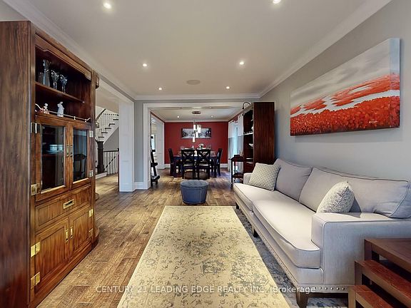This Home has the WOW factor, 2994 sqft of perfection on a 209 ft Fully landscaped lot. Large combined liv/din rooms with pot lights hardwood and crown moulding leading to Large gourmet kitchen with hardwood, centre island caesar stone counters, backsplash and accent lighting and walkout to covered patio, Large Family room with Hardwood, gas fireplace, pot lights and ceiling speakers, Solid Oak staircase leads to 4 large bedrooms with hardwood floors and 4piece semi ensuite in 2 bedrooms, Primary bedroom Features a spectacular 5 piece ensuite hardwood and walk-in closet, pot lights and crown moulding. The Finished basement has Large seating area open to games room with pot lights and loads of storage, Main floor Laundry with door to garage which has loads of storage shelves. Entertainers backyard with huge covered patio with pot lights ceiling fans and wired for speakers, Walk to schools shopping transit Main Street Markham and go station