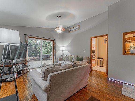 SO Much more than just the ordinary ranch style home is this 2-3 bedroom beauty constructed by well known local architect Jim Manning in 1982! Enter into the large living room adjoined to a large family/dining area, which lead to a large deck over looking the beautiful back yard with wooded appeal. The kitchen is very workable, featuring all newer stainless steel appliances to remain, skylights, and refinished cabinetry. A large master bedroom with ample closet space and full private master bath, offers the option of a 3rd bedroom if desired off the master suite. The laundry room houses newer Samsung washer/dryer. The outside landscaping is highlighted with a gorgeous hosta garden, recently re-worked. The back yard is lined with trees creating a private & forestry effect. The very generous front yard is secluded from the street as well. I-3 broadband is being installed currently. Sellers have not used fireplace but believe to be operable. Drive way is shared, please do not block. If you're seeking a custom built out of the ordinary home with lots of privacy and appeal-this may be the home for you!