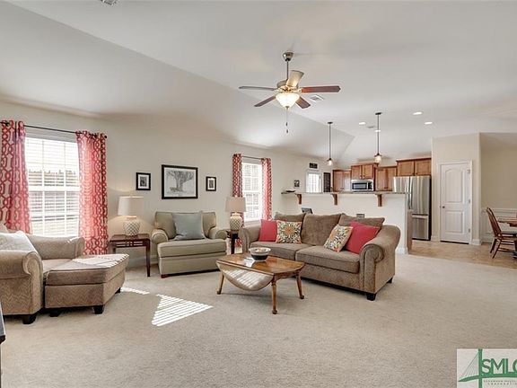 Adorable single story, split floor plan home in Laurel Mill! Open floor plan featuring oversized Great room with vaulted ceilings that opens up to Galley style eat-in kitchen with breakfast bar. Upgraded light fixtures throughout home. Master bedroom with trey ceilings, walk-in closet and ensuite bathroom with double vanities and large soaking tub/shower combo. 2 additional bedrooms and full bath. Laundry room has added custom cabinets. Spacious fenced-in back yard with added deck, perfect for entertaining family and friends. Homes has various upgrades including added gutters. Located in highly desired South Effingham School District!
