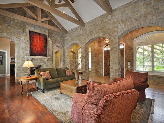 CLOSE-IN WESTLAKE HILLS custom w/ warm, Texas Hill Country interior: mesquite wood floors, interior stone walls, vaulted beamed ceilings. Gourmet kitchen includes professional gas oven & fireplace in breakfast area. Two living areas, master & guest on main. Two bdrms, game rm, bonus rm upstairs. 1.25 AC CORNER LOT w/ resort style pool/hot tub/waterfall. 3 car garage + addt'l guest parking. Quick 10 min. commute to downtown, EANES ISD schools & one of the LOWEST TAX RATES in Austin area.