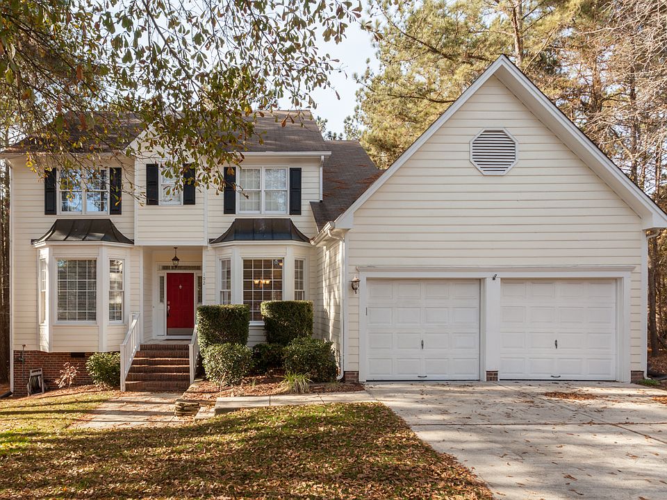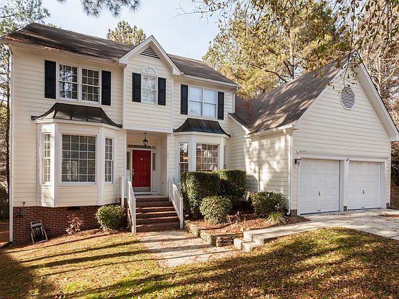This lovely home on a beautiful, wooded & landscaped cul-de-sac lot has been well maintained, including updated kitchen & baths.  The beautifully refinished hardwood floors in Living Room, Dining Room, & Grand Entry, and elegant wood moldings throughout, give the home a refined feel. The huge master suite includes a vaulted ceiling, custom built walk-in closet & a luxury bath. Lots of extra storage space available in the walk up attic and walk-in crawl space. Finished and brightly lit garage. The neighborhood is family-friendly with a great pool, tennis courts, sand volleyball, and a playground. Low county taxes! Great SW Durham location close to the American Tobacco Trail, Herndon Park, and convenient to South Point, Chapel Hill, RDU, RTP & Raleigh. Must see!