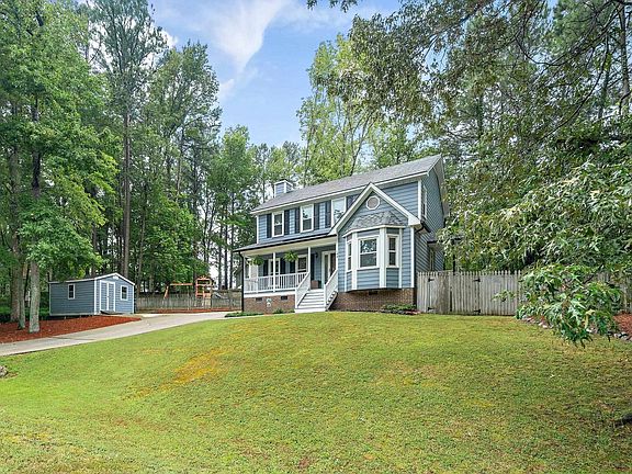 The rocking chair covered front porch welcomes you in to this move-in ready, warm and comfortable home. The family room offers a lovely fireplace with custom wall mounted cabinets and opens onto a new expanded deck (2020) and new expansive patio (2021). Hardwood floors in the breakfast area, kitchen, dining room and hallway. Bright, sunny kitchen with bay window and granite counters. Powder room fully updated. New exterior paint (2021), new gutters (2021), and new energy efficient windows and 2 exterior doors (2020). Fenced in area for play set or pets and a large storage shed. Convenient Knightdale location on corner cul-de-sac lot in Carrington Woods subdivision and only minutes to Knightdale schools, abundant shopping, restaurants and I-540. Play set is negotiable. Comes with one year Home Warranty! Seller prefers to close in 30 days and lease back for up to 60 days.