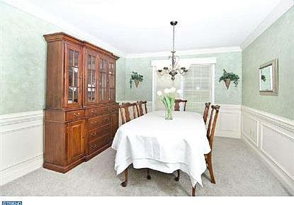 Elegant home available in the sought after West Glen development! Conveniently located right off of RTE 202 in a picturesque setting in the heart of the Rustin/Stetson School district. This large and attractive home offers hardwood floors in the entry, staircase, and up to the second floor hallway. The home offers beautiful wainscoating and crown molding that extends from the main entry into the formal living and dining rooms, up the hardwood staircase and into the second floor hallway. The main level includes an over-sized family room which flows nicely from the kitchen and offers exposed beams, recessed lighting, a gas fireplace and french doors onto the deck/patio - well suited for entertaining. The large kitchen includes lots of counter space, a newer stainless steel fridge and stainless steel appliances, and a spacious eating area that also has french doors onto the deck/patio. Finishing off the first floor is a powder room, and full mud room with built in hooks and storage space for coats and shoes, along with a full sink. On the second floor is a large master suite with a huge walk in closet and master bath with soaking tub and separate stand up shower stall. The second floor has 3 large additional bedrooms each with plenty of closet space, and another full bath. The laundry room is located on the 2nd floor - a rare find and major convenience! Completing the home is a finished basement with a common entertainment area, a separate room and and additional unfinished room for storage. The home has had significant improvements which include: new roof (2008); new siding (2008); new HVAC (2010); all new windows (about 2-3 years old); new garage door; (2011); new front entry and side door (about 2 years old); new walkway from drive (about 4 years old); frontloading washing machine (1)year old; stainless steel fridge (2010).