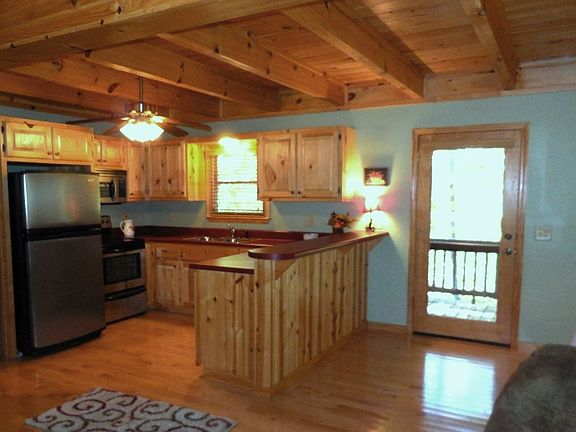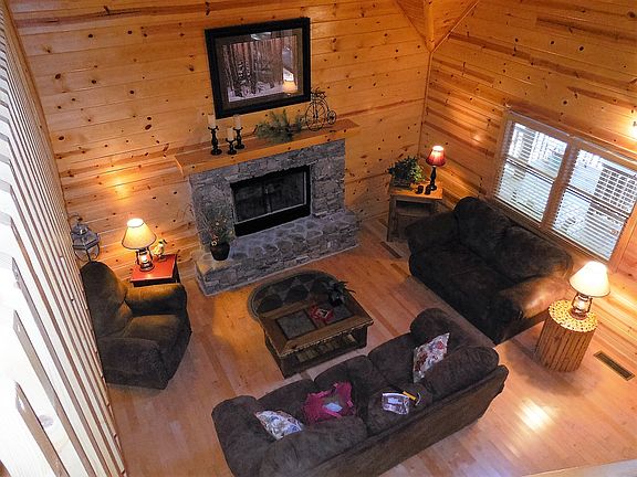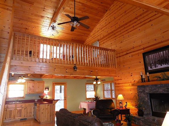JUST REDUCED!! This spacious cabin is for the everyone! Quality is obvious in the construction and care of this home. The beautiful wood beamed cathedral ceilings, three stone fireplaces and hardwood floors give a rich country feel. Take your pick where to relax! Home features wrap-around porches, playroom/multipurpose room, storage room, screened in room for potting and such. All furniture is included, and all appliances too! This is truly turn-key for you. The Loft is so large it can serve as a bedroom or office. Located in a beautiful community that loves its natural beauty.