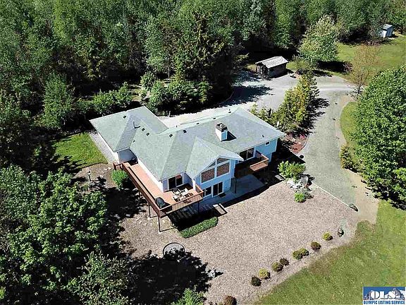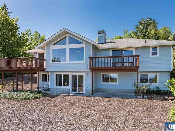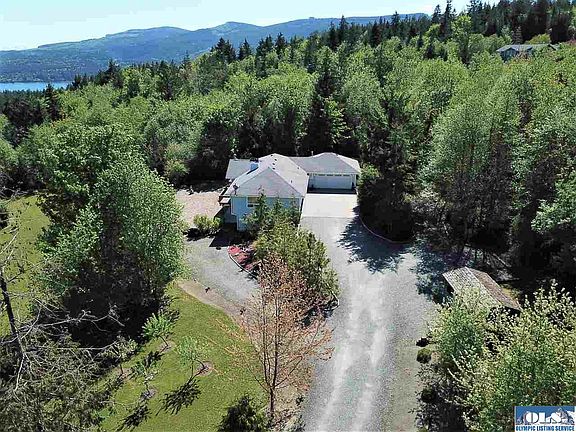 Beautiful Water & Mountain views from this custom home located in a small community of homes on 2.42 acres. Ideal home with all main floor living, new granite counters in kitchen & bathrooms, tile floors, trex deck off kitchen, large master suite with 5 piece bathroom, private deck, 2nd bedroom and guest bathroom. Comfortable guest quarters in the daylight basement for family and friends with kitchenette & large pantry, large family room area with propane fireplace, guest room & full bathroom + den.