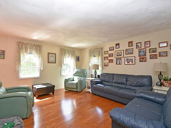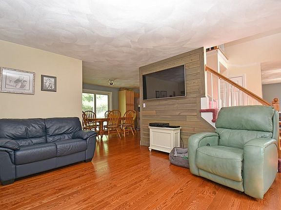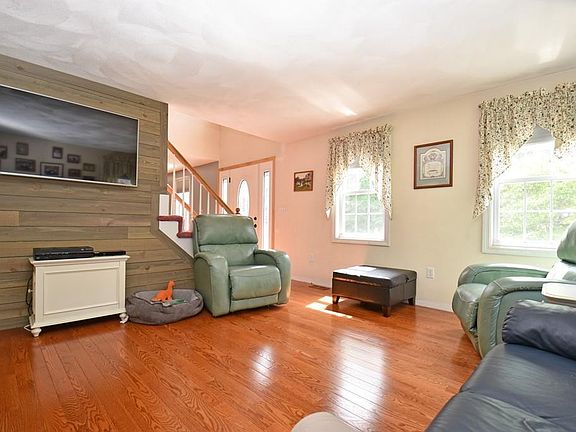 Welcome home! 3 bed, 2.5 bath colonial perfectly situated on a cul-de-sac is looking for YOU to come fill it with memories! Step inside and to your left is your bright and sunny living room with HW floors open to the kitchen. Kitchen with HW flooring, new s/s appliances, a pantry and slider to the back deck! Formal dining room with HW floors and chair rail is great for entertaining guests. A half bath with convenient first floor laundry concludes the first level. Step upstairs to your master suite! Spacious bedroom with w2w carpet, walk in closet and full bath with linen closet! 2 additional generous sized beds with ample closet space & another full bath. Basement is partially finished with TWO bonus rooms - bring your ideas! Larger bonus room has w2w carpet and wood stove. Smaller room with w2w carpet and a closet. Updates include new roof, water heater, front and side doors and slider. 2 storage sheds, above ground pool, fire pit and central A/C completes this package! See it today!