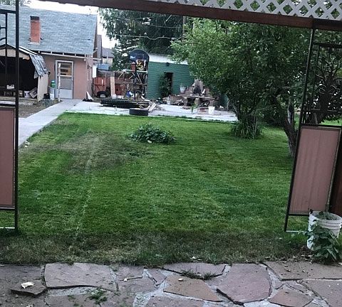 Stucco home with spacious bedrooms (3) and bathrooms (2), an attic that could be used for an office, and dining room. Well developed landscape (lawn, apple trees, flowers, strawberry patch). Home is conveniently located two blocks from school. Two car detached garage with above storage area. Nice neighborhood.