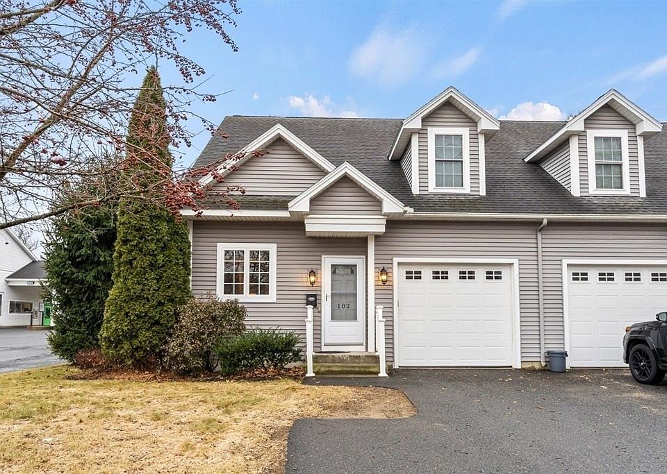 Move right in to this spectacular two bedroom condo duplex. This unit has been beautifully maintained, it includes 6 rooms 2 bedrooms and 2 1/2 baths. Open floor plan from kitchen to dining room to living room to sunroom, which leads to private backyard. Features in kitchen include granite countertops, all appliances, stove, refrigerator, dishwasher, garbage disposal and plenty of cabinet space. Dining room includes hardwood floors,natural light from windows. Living room has a vaulted ceiling with skylight and hardwood floors. Main master bedroom on first floor, spacious with two closets, ceiling fan, and full bath. First floor also includes half bath with first floor laundry, washer dryer. Second floor includes open sitting area for relaxation a second bedroom with two closets and additional full bath with shower. This home has a full unfinished basement, ready for your exercise room, family room, or whatever your heart’s desire. Gas heat, central air, one car garage.