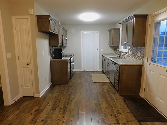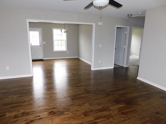3 BR/2 BA. Great floor plan with Large rooms, hardwood in great room, DR & Kitchen, carpet in bedrooms. Master BR has walk-in closet and double sink vanity in bath. Custom kitchen cabinets with stainless appliances. TVA gave this house 10 out of 10 for energy efficiency which included sprayed foam insulation in the walls, high efficiency hot water heater & insulated garage door. Paved drive on a large lot. Hot tub and storage building do not stay. Measurements approx.-measure if important.