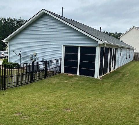 One level home very well maintained. This home has been very well cared for and offers many upgrades such as hand scraped hardwoods, all appliances including a front load washer and dryer with drawer stands are included. A nice fireplace in the living room and no walls have any nail marks. Open floor plan with a very private master bedroom that includes trey ceiling. Master has separate sit in shower, garden tub, private water closet, double vanity and walk in closet. Hunter Douglas Battery operated blinds in living room and one bedroom. Custom honeycomb styled Hunter Douglass blinds in the master suite. Lots of space with a well manicured yard. The yard has been maintaied by Tru Green. Owner added an easy breeze porch and a nice rawed iron fenced in back yard. The hot water heater is natural gas and this is a true find. All one level with nice walk in closet in the master. Won't last long. This is an estate.The Hoa covers the lights, entrance and mailbox and is only $50 a year. House previously had a smoker but well cared for.