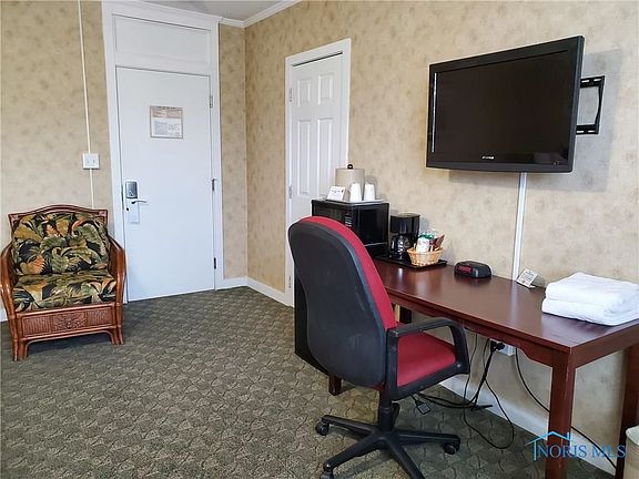 Two queen suite in the historic Island House. This condotel is just steps from the Portage River, Jet Express, dining, charter fishing & shopping. Port Clinton boasts sandy beach and parks to enjoy. Renovated. Flat screen TV, Wi-Fi, private bath, refrigerator. Lobby boasts a fireplace, with oversized furniture to relax in. Breakfast room. Enjoy it year round or allow the on site management team to rent your unit when you are not using it. Utilities included in association fee. Elevator building.