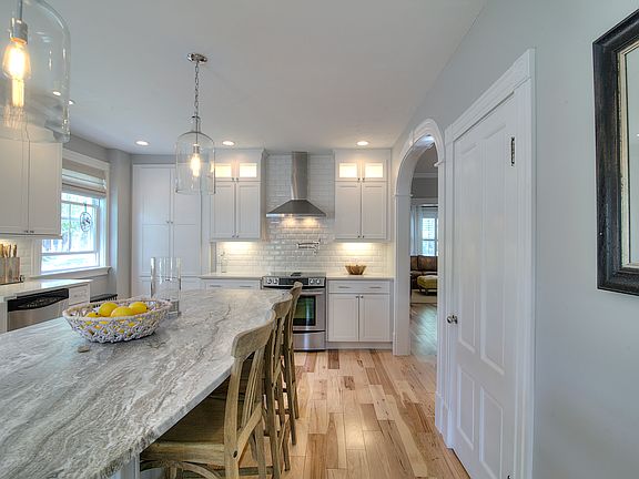 When ordinary just won’t do, distinction and dignity abound in this 10 room/4+ bedroom meticulously maintained New Englander on oversized corner lot offering plenty of natural light and professionally landscaped grounds. A storybook home brought to life by expert craftsman! First floor offers tiled mudroom w/laundry room, gorgeous new custom kitchen, featuring new cabinets, honed granite and quartz counter tops , stainless appliances, hickory floors, new lighting, new windows, and new trim. The biggest surprise of all is impeccably restored to original beauty “hidden” back staircase and original front doors. 2nd floor holds three bedrooms with leisure/play room and modern day full bath. 3rd floor is a great spot for optional master, visitors or older children as it has a family room, bedroom and 3/4 bath. Short walk to schools, Amtrak, restaurants, shops and PEA. Great yard with a detached carriage style 2 car garage with loft for additional storage. Recent complete electrical service upgrade including generator hookup… quality was the first consideration in the building of this mid 19th Century colonial! Delay may mean disappointment.