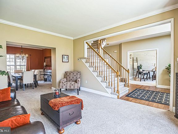 Stunning Brick-Front Colonial on Over an Acre in a Prime Cul-de-Sac Location! Welcome to your dream home! This beautifully updated 4-bedroom, 2 full and 2 half bath residence is perfectly situated on over an acre of land, offering breathtaking views, exceptional privacy, and a lifestyle of comfort and elegance. From the moment you arrive, the impressive brick façade and quiet cul-de-sac setting set the tone for what awaits inside. Step through the front door into a bright and welcoming two-story foyer with hardwood floors that are flanked by a private office with French doors and a sunny bay window—ideal for working from home. The formal living room with crown molding flows seamlessly into the elegant dining room, which features custom millwork and a double window overlooking the expansive backyard. The heart of the home is the updated eat-in kitchen, boasting an abundance of crisp white cabinetry, an island with breakfast bar, gas 5-burner cooktop, and a sunlit breakfast room with French doors leading to the large patio—perfect for everyday meals and entertaining. The kitchen has beautiful hardwood floors and opens to a spacious family room also with hardwood floors, soaring ceilings with skylight and a show-stopping stone fireplace flanked by custom windows with sunrise transoms, bathing the space in natural light. A back staircase, convenient powder room, and large laundry/mudroom with access to the oversized 2.5-car garage complete the main level. Upstairs, you'll find four generously sized bedrooms. The luxurious primary suite is a true retreat with wood flooring, a vaulted ceiling, sitting room also with a vaulted ceiling (ideal as a second office or dressing room), two walk-in closets, and a brand-new spa-like bath featuring a gorgeous tile floor, double vanity, oversized stall shower, and a freestanding soaking tub. The hall bath has also been recently renovated with double sinks, beautiful tile, and a tub/shower combo. A hallway pull-down attic offers additional storage. The fully finished basement is an entertainer’s paradise with a game room featuring a wet bar with built-in refrigerator and freezer, a media room with surround sound and built-ins, a playroom with storage closets, a powder room, and a fantastic home gym. Step outside to your own private oasis—this level backyard is ideal for barbecues, playing ball, a swing set, and more. The flagstone patio and stone wall for the perfect spot for entertaining and dining alfresco. A storage shed provides space for your gardening tools and snow blower, keeping your garage clutter-free. Tucked in a prime location just minutes from top-rated schools, shopping, dining, walking/biking trails, and township parks. Doylestown and major commuting routes including the PA Turnpike and Route 202 are just a short drive away. This home truly has it all—space, style, privacy, and an unbeatable location. Don't miss this incredible opportunity!