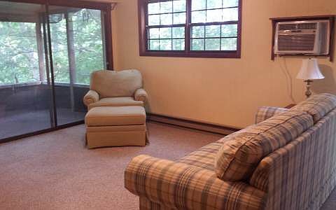 Warm and cheery condo with large screened porch. Seasonal Lake views thru the trees.An electric fireplace and baseboard heat. Wall unit for cooling. Washer & Dryer, Stove, Refrigerator. Water, sewer and trash pickup included. Lake access with picnic area at the common area.