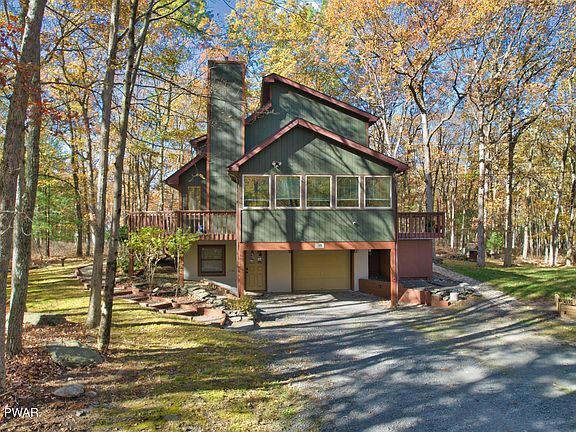 Discover the perfect blend of comfort and tranquility in this spacious 3-bedroom, 2-bath home, set on a 1.75 acre lot within the desirable Pocono Mountain Water Forest. Enter into a beautiful Living Room with soaring ceilings, gleaming hardwood floors throughoutwith and skylights that creates a bright and airy feel. The open concept living space seamlessly flows into the heart of the home, the Kitchen that has modern touches and functional space. Off the Dining Area is a cozy Den or a Formal Dining Room. This room is a perfect gathering spot for friends and family to enjoy. The Primary Bedroom is conveniently located on the main floor with a large Walk-In-Closet. The main floor also has a spacious bathroom with a shower and jetted tub. Upstairs, you will find two generously sized bedrooms and a loft that overlooks the stunning main floor living area. The Basement offers a perfect blend of function and entertainment. One half is transformed into a cozy media room, ideal for movie nights or immersive gaming sessions. This inviting space features a convenient walkout to the backyard and outdoor areas, and is climate-controlled with efficient split-unit systems, ensuring year-round comfort. The other half of the basement is left unfinished, offering ample room for storage and a dedicated area for laundry, making it a practical and versatile space for daily living needs. This home is equipped for modern living with split units providing efficient heating and cooling, a whole-house generator for peace of mind, and a one-car garage. Additionally, the exterior has been freshly painted, enhancing its curb appeal. Nestled in a serene community that offers amenities such as a lake, pool, and clubhouse, tennis and basketball courts and 24 hour security. This home is perfect for those seeking a peaceful retreat while still enjoying access to recreational activities. Home Warranty Included. This is Pocono living at its finest!