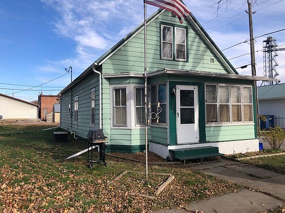 Two story, three bedroom house with aluminum siding and steel roof. The home features a double living room, south porch, a full bathroom with utility hook- ups, a larger kitchen with dining area, 220 hook -up, wooded built-in cabinets, a rear rec room with bar. Also a full basement with electric water heater installed in 2019 a gas furnace, and newer breaker box. The second floor features a large North bedroom and a large South bedroom and a storage room.