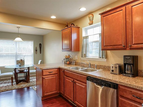 NO CARPET! Lots of Hardwood Flooring in this 3 BR, 2.5 BA End Unit w/1st floor Master Suite. Great Room w/vaulted ceiling feat HW Flrs, open dining area, gas fp & access to deck. Eat-in kit w/HW Flrs, Breakfast Rm, plenty of counter space, & SS Appl. HW Flrs in all Bedrooms & spacious Loft area too. Master Suite feat walk-in closet & Full BA w/Ceramic Tiled Shower. Walkout bsmt already insulated & ready to be finished. Addit feat incl gas heat, 2 car gar, $128 condo fee takes care of Exterior Maintenance.