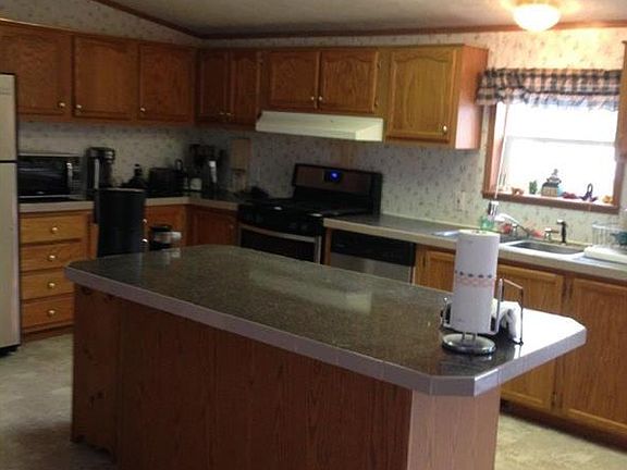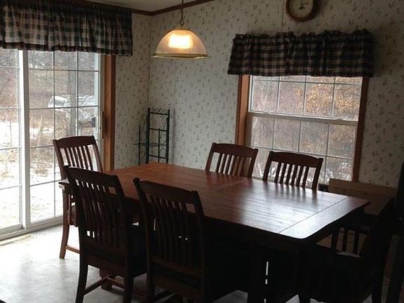 Spacious double wide on full foundation. 3 stall horse barn. Log burning fireplace in Living Room. Built in cabinets in Living Room. Cathedral ceilings. Large coat closet at entry. 1st floor laundry with pantry. Large kitchen with island. 2nd furnace in basement. Basement is also plumbed for 3rd bath. Stream and fruit trees on 8.6 acres.