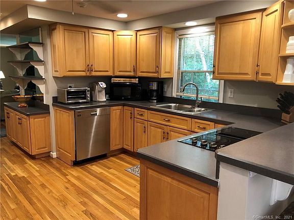 This wonderful 3 +bedroom, 2.5 bath home in desirable Wilton is a must see & minutes to everything. As you step into the home you notice the refinished oak hardwood floors & new rugs that compliment the freshly painted walls. The family room has vaulted ceilings and a wood burning fire place, perfect for entertaining. Top of the line appliances including a Viking Professional refrigerator, Wolf double convection oven w/Kenmore Elite downdraft cooktop, Miele Platinum dishwasher. Beautiful detailed deck off the back for entertaining all on 1 acre+ grounds, w/possible pool site. All this in a secluded wooded neighborhood, but yet close to everything. This hidden gem wont last.