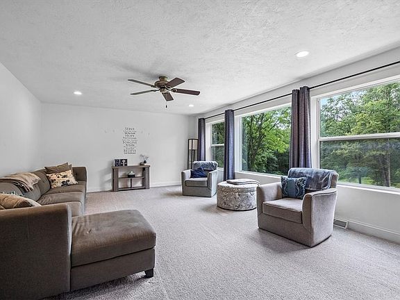 Remarkable custom built home by Parry! This home is boasting with space and storage! Situated on just under 5 acres of mature tree lined property that provides plenty of privacy. The open kitchen and living space has views that overlook the massive backyard and outdoor patio. Kitchen features GE appliance suite with gas cooktop, double wall oven & dishwasher. Solid wood cabinets w/ soft-close drawers, SS hood range, large kitchen island, quartz countertops, engineered hardwood flooring & a large custom coffee bar w/ butcher block countertop. The first floor bedroom with ensuite creates the perfect home office, guest room or play room. 2 story open foyer & staircase will lead you upstairs to the massive master suite ft a private sitting area, master bath with tiled shower, quartz topped vanities and large walk in closet. 2 bedrooms feature a Jack n Jill bathroom with quartz topped vanities that provide ample counter space and storage. This home has so many features it is a must see!!