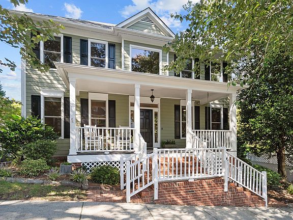 Come experience the coveted Southern Village lifestyle of Chapel Hill, where charming sidewalk-lined streets lead you to vibrant restaurants, parks, pools, sports courts, soccer fields, a coffee shop, a movie theatre, and endless outdoor adventures by direct access to public Greenway Trails. This well-maintained home boasts recently refinished upstairs hardwoods, full exterior fiber cement siding paint in the last 3 years, a freshly painted interior, 2019 new roof, all new Marvin windows Dec 2022, and a recently renovated primary bath featuring a walk-in tiled shower, modern soaking tub, and separate water closet. The versatile floor plan includes 4 bedrooms, an additional downstairs office, plus a brand new detached heated/cooled studio. Prewired for Internet, the detached studio also features rockwool insulation for comfort & noise reduction -- perfect for an additional office, exercise room, or play! The living room, hemmed by large windows and a gas fireplace, opens to the breakfast area and kitchen center island, complemented by a formal dining room and walk-in pantry. Enjoy modern conveniences with select voice/remote-controlled window shades and lights throughout, plus a garage EV/RV outlet. Ample attic storage includes a pull-down attic as well as spacious eave storage. Rounding out the outdoor living spaces are a rocking chair front porch (complete with the obligatory southern porch swing!), a gracious upper deck, & a lower covered brick patio - complete with an outdoor flatscreen TV. Additional highlights include windows galore, hardwood floors throughout both levels (zero carpet), a large ''walk-in'' crawl space, the generous 22 X 22 two-car garage with high ceilings and storage system racks already installed, a sweetly fenced private lot, and low HOA dues. Prime location: 1/2 mile to Mary Scroggs Elementary, 1 mile to Culbreth Middle School, 2 miles to Carrboro High, 2 miles to UNC Hospitals. Under 2.5 miles to Carrboro, Franklin St and UNC central campus and on the bus line.