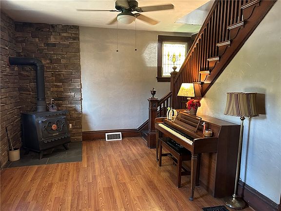 Charming 2 Story Home on on a double lot. Some of the features are Large foyer with wood burner , first floor laundry, first floor full bath, Oak kitchen cabinets, Large living room, dining room with gas fireplace, 4 spacious bedrooms on second floor with full bath and room to expand in the attic area.