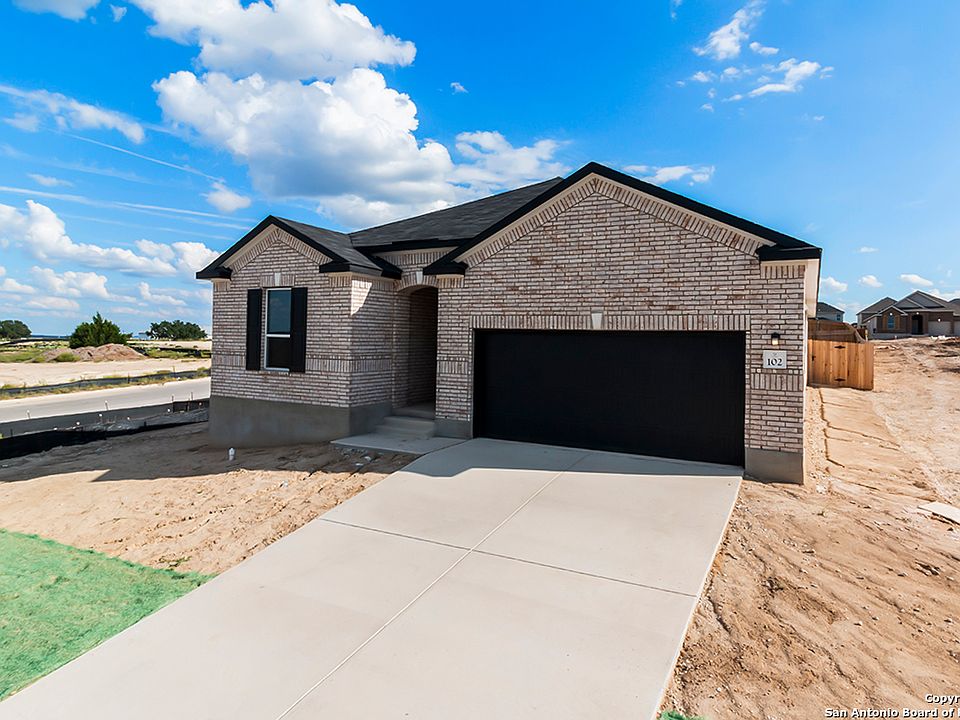 Welcome to this exquisite home featuring 9-ft. first-floor ceilings and a versatile den with double doors. The kitchen is designed for both style and function, offering an extended breakfast bar, a Daltile tile backsplash, and sleek Silestone countertops in Desert Silver. The primary bath invites relaxation with a 42-in. garden tub and a separate shower with Emser tile surround, all complemented by elegant vinyl plank flooring. Enjoy thoughtful touches such as an exterior rear door with a blind insert. Additional features include a soft water loop and a reverse osmosis system. The outdoors is equally impressive with an automatic sprinkler system for easy lawn maintenance.