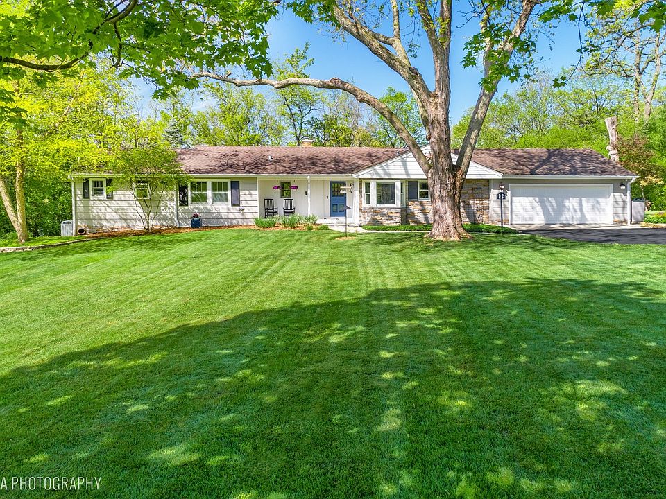 Welcome to this simply stunning ranch home set on a gorgeous, nearly 3/4 acre lot. This Northwoods style retreat complements its natural surroundings offering breathtaking views throughout. Sun drenched rooms and the thoughtful use of space offers the perfect blend of tranquility and convenience. Panoramic views await in the sunroom with walls of windows, creating an idyllic spot for your morning coffee, evening unwind or curling up with your favorite book. Whip up culinary delights in the spacious, chef's delight kitchen boasting stainless steel appliances, quartz counters and a wonderful breakfast area offering lovely views from the bayed window. Fabulous open concept living / dining room is sure to be a favorite gathering place where you can cozy up by the crackling fire, savor the picturesque views and host memorable dinners, creating memories for years to come. Need additional living & playing options? The finished lower level has it all! A large rec/game room with fireplace and wet bar, wine room with French door entry, full bath and laundry room! Fabulous storage area, exercise room and office offer flexible options for your lifestyle. Step outside and immerse yourself in nature's beauty. A flagstone patio and sprawling lawn provide a perfect backdrop for outdoor entertaining, al fresco dining and stargazing on warm summer evenings. Oversized 2.5 garage offers additional storage space! Just minutes from town, train, shopping and restaurants, the location is unbeatable! Located in award winning Barrington D220 school district. Come for a visit and fall in love!