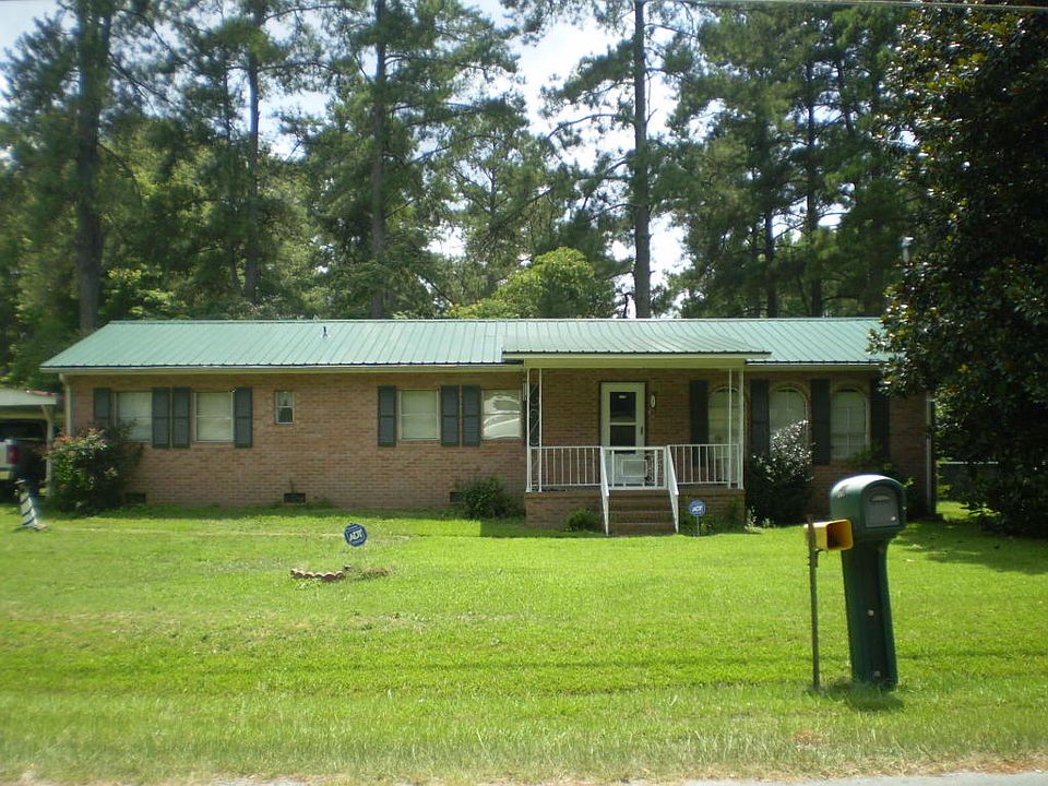 From the outside, you would never know this was a mobile home. It has been completely bricked all around. New metal roof just a few months old. Huge yard with fenced back yard. It even has a pear tree full of pears.